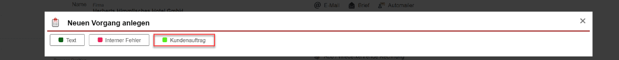 Vorgänge werden meistens über einen entsprechenden Funktions-Button aus der Leiste „Anlegen & Aktionen“ eines Kundendatensatzes angelegt und in diesem auch in einer Übersicht gelistet. Aber auch die Anlage von autarken Vorgängen ohne direkten Kundenbezug ist möglich.
