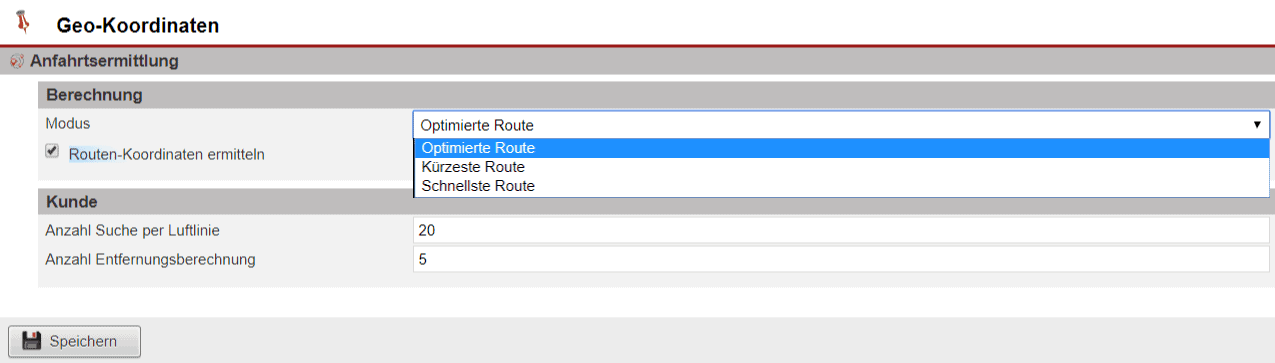 Die Einrichtung der Anfahrtsermittlung